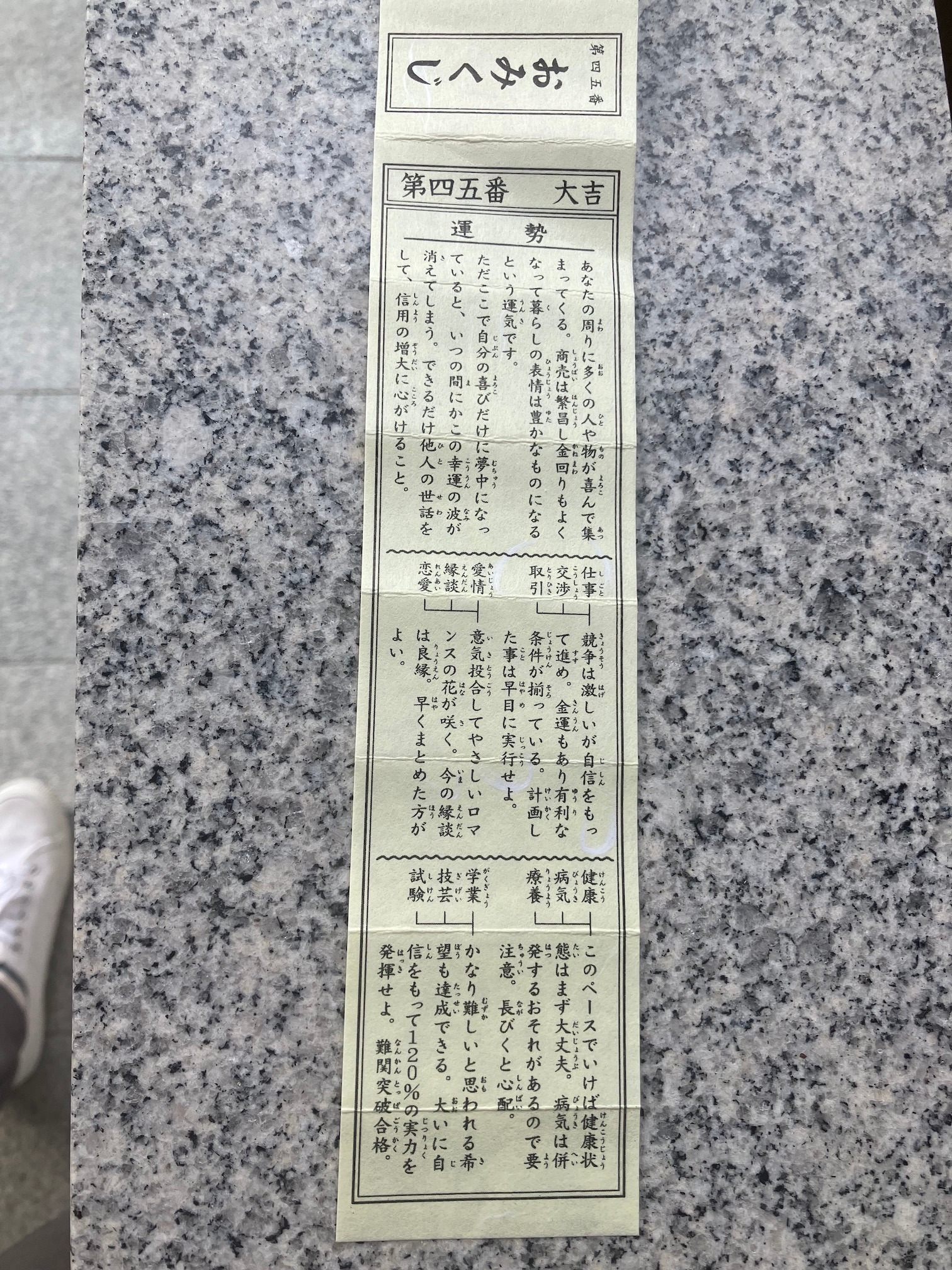 おみくじを引くとなんと大吉が( ゚д゚)
