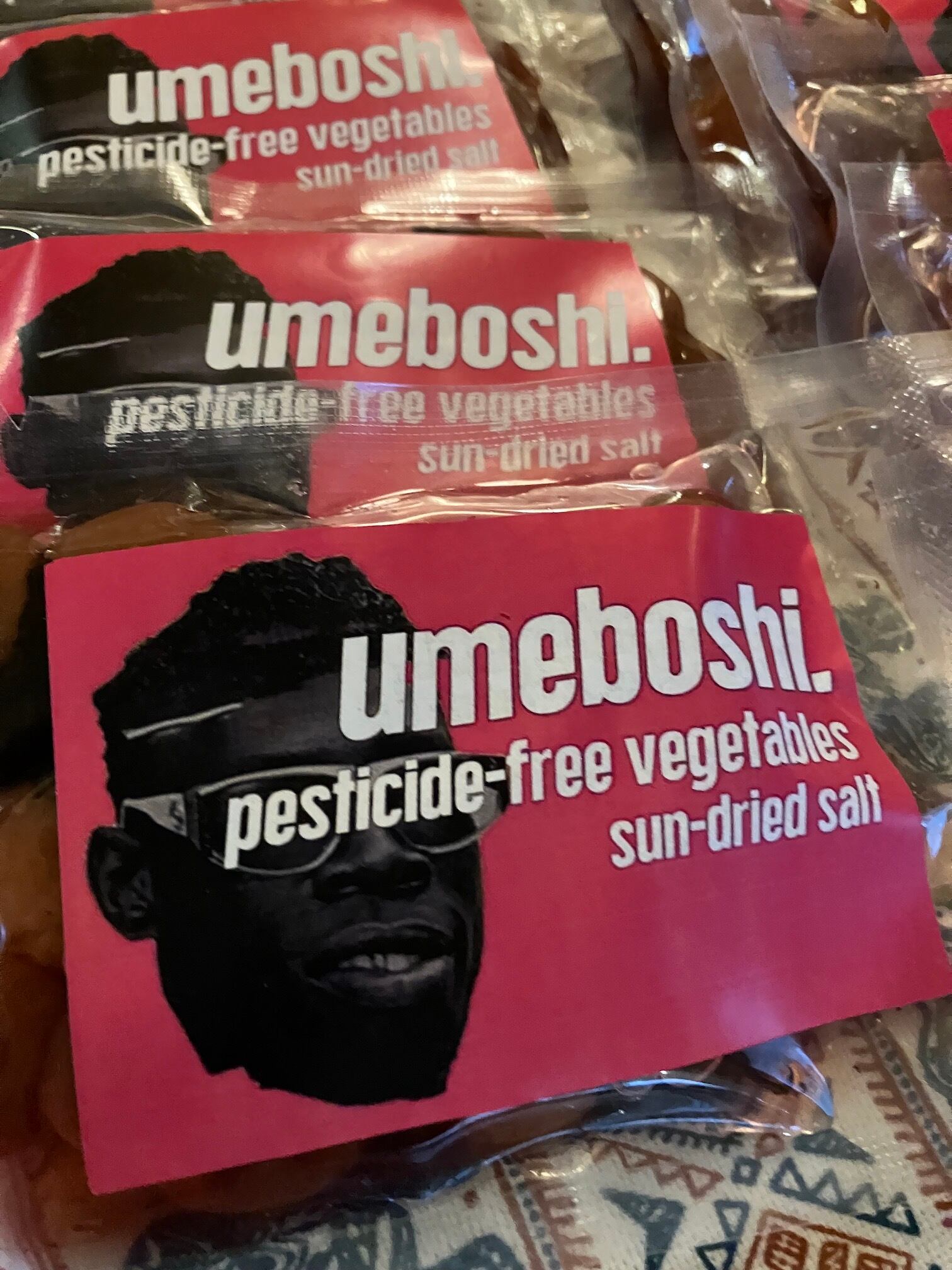原材料名 梅(愛媛県産)、赤紫蘇(愛媛県産)、塩、金粉(極楽塩)