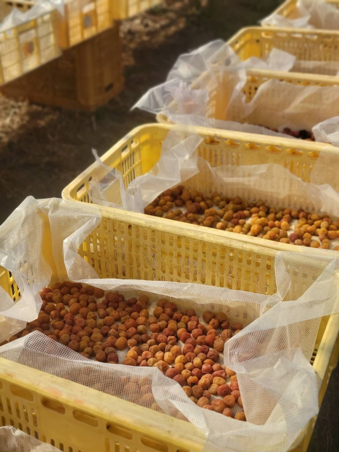 梅干しの仕込み作業は地元の方々に声掛けをし、みんなで梅のヘタとり、塩漬けをお手伝い